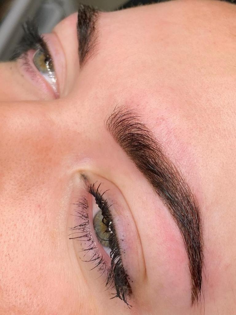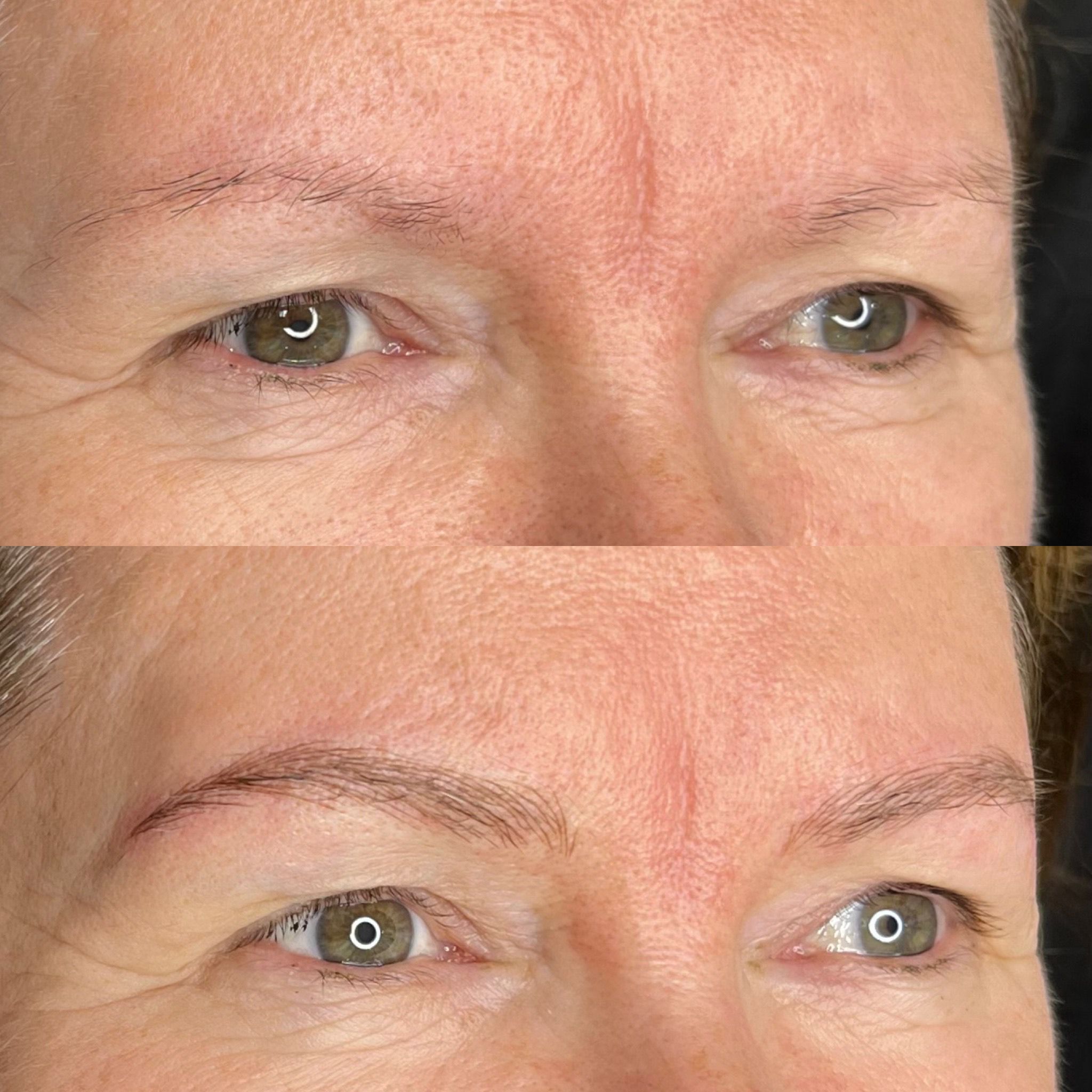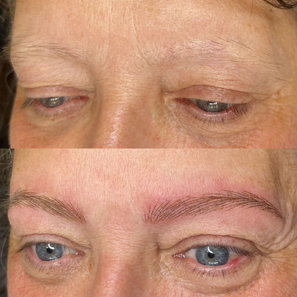 This is a Hairstroke technique using a tattoo pen. Soft hairstrokes are lightly etched into the skin to give a soft and natural hair like result.